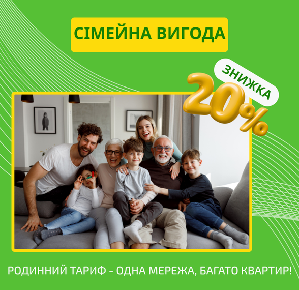 Підключайте інтернет в кількох квартирах або для рідних — отримуйте до 20% знижки на рік для кожного абонента.
